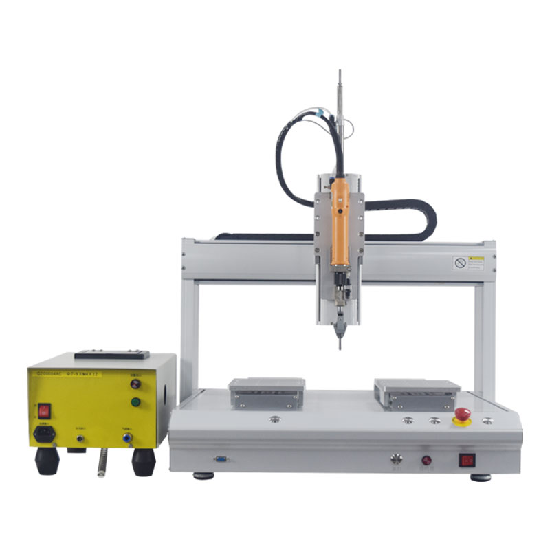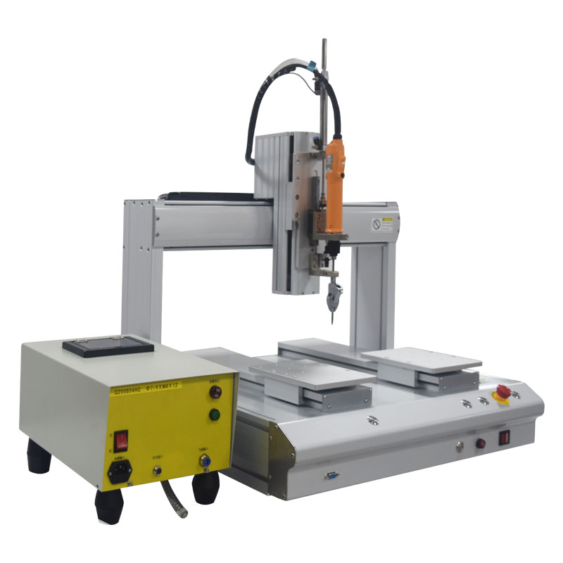 自动锁螺丝机是一种用来锁付螺丝的自动化设备,只需要把螺丝放置于在供料器中,按下启动键机器就会通过供料机经过管道自动吹出螺丝并移动到产品上方,电批根据程序自动锁付产品。产品锁付完成之后,人工取下产品就可以了。极大的方便了工人的操作,使得效率大幅度的提高,能大大减轻工人们的劳动强度,又可以提升企业的效率和产品合格率。